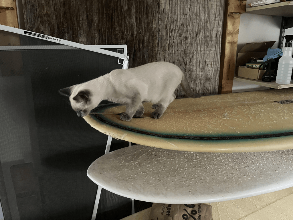 Heard from my Mom that Nuclear Missile Silo the car decided to take advantage of this weekend’s surf from Atlantic hurricane Kirk. Felt like sharing the moment when she got caught hanging ten on my board: