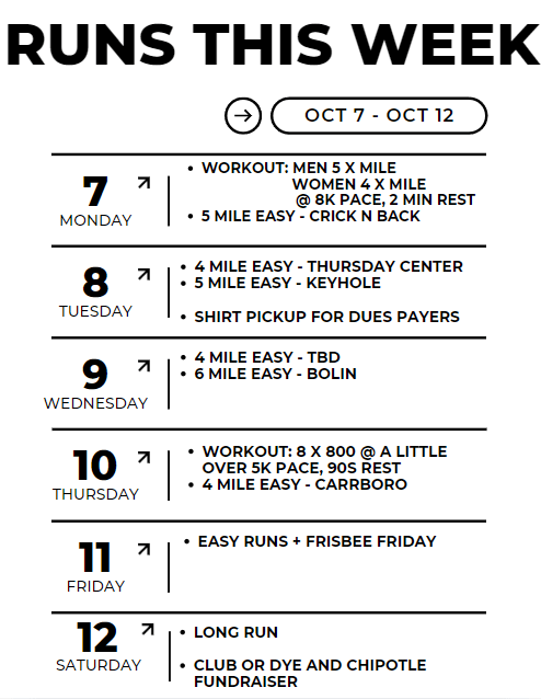 - Directly following Club or Dye, we will be heading to Chipotle for a fundraiser. More info will be sent this week in the GroupMe – but the TLDR is that for every sale we “earn” at Chipotle on Saturday between 5-9pm we will get a portion of the funds. So……….. DINNER AT CHIPOTLE ON SATURDAY!!!! (After tie-dyeing of course).